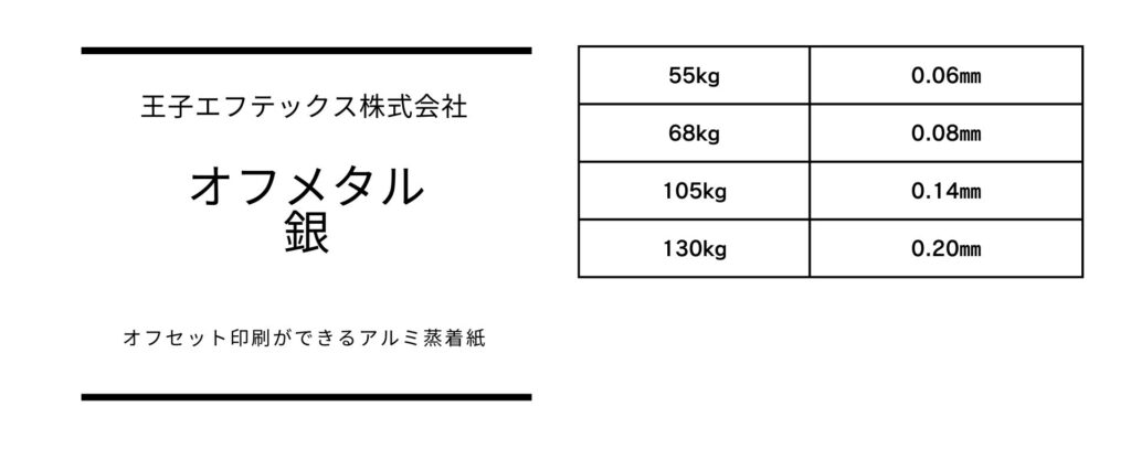 紙のソムリエ DM用紙オフセット印刷オフメタル銀パッケージ紙メタリック紙光沢紙特殊紙紙もっと銀紙高級印刷紙 シルバーの輝きで差をつける『オフメタル銀』 紙のソムリエ 2025.11.13 金属のような輝きと印刷適性を両立したアルミ蒸着紙 「オフメタル銀」は、アルミ蒸着による金属のような光沢を持ち、華やかさ・高級感・視認性 を同時に実現できる特殊紙です。“金属の板” のような質感を紙で再現しているため、パッケージ・台紙・カード・DM・化粧品箱などで“とにかく目立たせたい場面” に多く採用されています。 目次 オフメタル銀とは?印刷・加工適性とおすすめ活用法厚さ・連量と用途紙の風合いと色展開まとめ:こんな方におすすめ最近の投稿 オフメタル銀とは? 『オフメタル銀』は、その名のとおり銀色に光るメタリックな高級印刷紙です。表面に独特の光沢があり、視線を引きつける存在感が特長。一般的な銀紙とは異なり、オンデマンド印刷に対応している点が大きな魅力です。メタリックな質感を活かして、高級感や近未来的な雰囲気を演出できます。 印刷・加工適性とおすすめ活用法 『オフメタル銀』は、特殊紙でありながら印刷適性が高く、オンデマンド印刷での発色や文字の視認性も良好。白インクを下地に使ったカラー印刷や、箔押し・UV加工との組み合わせも効果的です。おすすめ用途例:DM、招待状、リーフレットなどインパクト重視の印刷物に名刺やステッカー、限定アイテムの台紙にパッケージ・タグなど、高級感を打ち出したい商品にテクノロジーやアート関連の印刷物にも最適 厚さ・連量と用途 厚さは55kg〜130kgまで展開90〜68kg:フライヤー、DM、冊子の中面や仕切りに105〜130kg:名刺、カード、台紙、表紙などに 紙の風合いと色展開 「銀」一色。光の当たり方で見え方が変わる鏡面調の輝きゴールド調のオフメタル金も『紙もっと!』ではラインナップ表面はなめらかで加工によって、メタリック感をより立体的に演出可能印刷や箔の仕上がりも引き立ち、シンプルな構成でも映なかなか写真ではお伝えしづらい部分ではありますが『オフメタル銀』の上にカラーのベタで印刷をするとカラーメタリックが表現できます! まとめ:こんな方におすすめ 他と差がつく“キラリと光る”印刷物を作りたい方高級感・未来感を演出したいブランディングツールを制作する方メタリックな銀紙を探している方DMやパッケージなどでインパクトを重視する方 こちらからご購入いただけます! 株式会社立川紙業五十嵐 広治(いがらし こうじ)日本洋紙板紙卸商業組合 認定「紙営業士」株式会社立川紙業/ECサイト「紙もっと!」管理人紙とともに育ち、紙を愛し、紙の魅力を伝えることを仕事にしています。現在は、株式会社立川紙業にて以下を中心に活動中・ECサイト「紙もっと!」の企画・運営・コーポレートサイト/ブログの制作・更新・InstagramやyoutubeなどSNS運用による情報発信全国の印刷会社・デザイナー・個人ユーザーに向けて紙の楽しさ・奥深さを日々発信しています。 最近の投稿 【出展告知】『諏訪の森MARKET 秋祭り(11.2)』に参加します! TP通信 511号 TP通信 510号 地元・立川から生まれたアパレルブランド『〒190』|地域と人をつなぐ 【出展告知】『諏訪の森MARKET 夏祭り(7.12)』に参加します! LIMEX Sheet ECサイト『紙もっと!』 TP通信 509号 1% for Present Tree植樹体験 タック紙ラインナップ追加 ECサイト『紙もっと!』 TP通信 508号 Instagram X-twitter Facebook Youtube Line