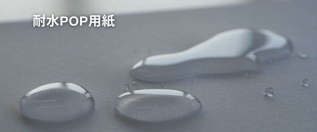 耐水POP用紙とは、水に濡れても にじみにくく、破れにくい 特性を持つPOP・表示向けの用紙です。