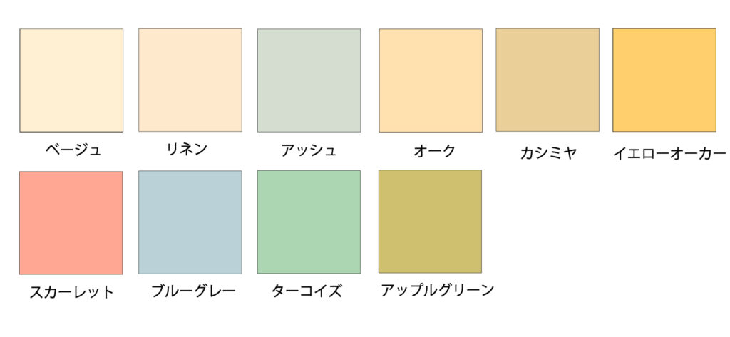 カラーバリエーションは、淡く柔らかな色を中心に10種類。