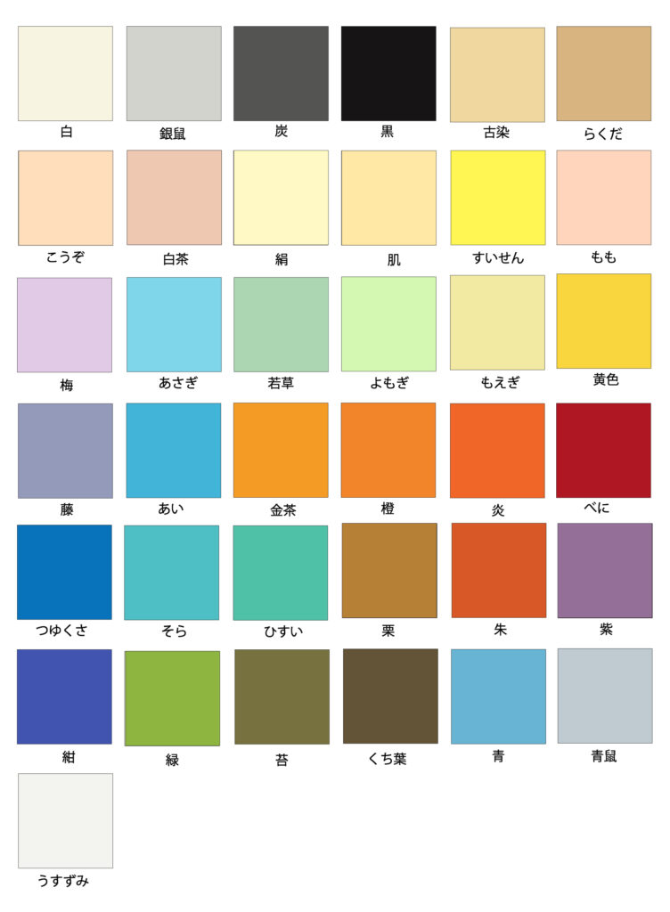 落ち着いた伝統色のラインナップでデザインに合わせやすい。