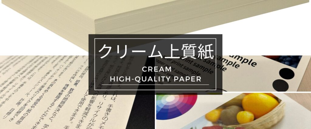 「クリーム上質」は、柔らかなクリーム色が特徴の上質紙で、小説や教科書、冊子本文などに広く採用されている定番の書籍用紙です。