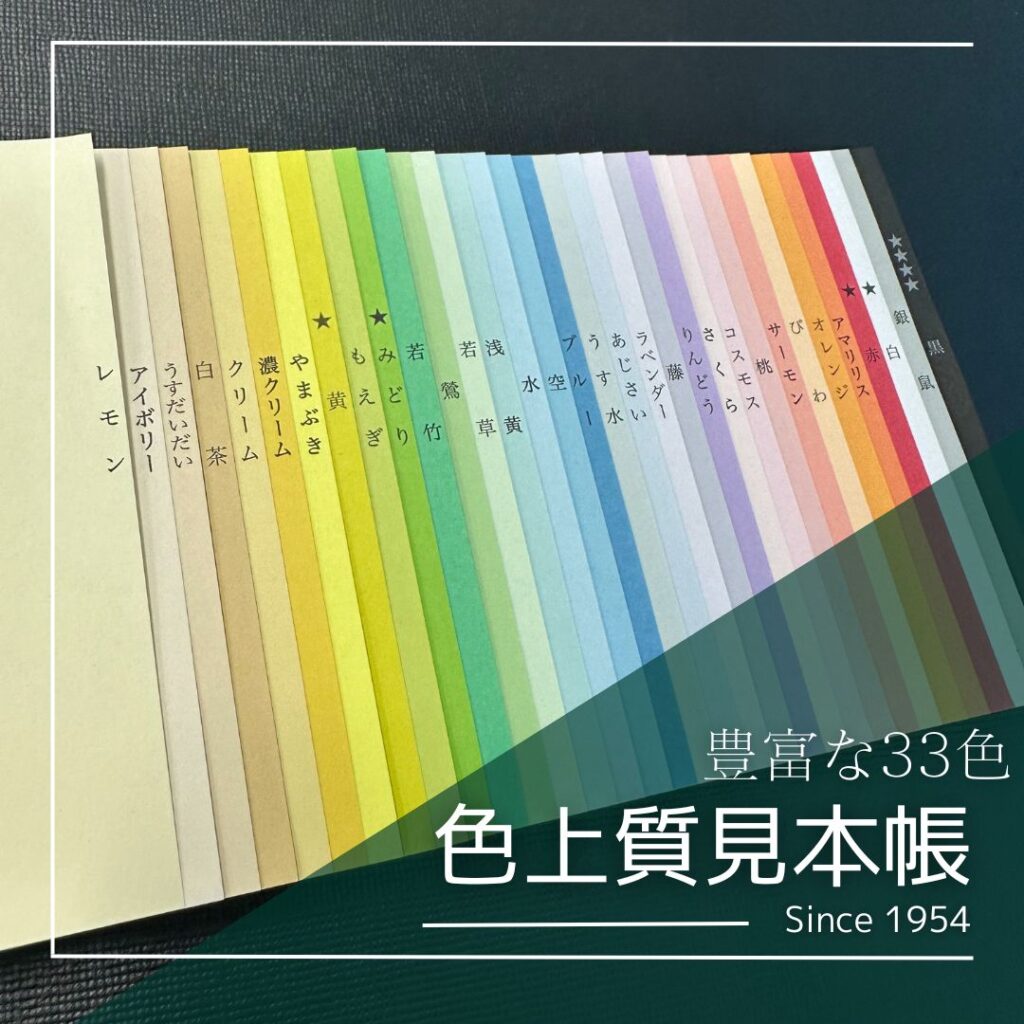 「紀州色上質」は、誰もが一度は手にしたことがあるといっても過言ではない、定番の色上質紙です。