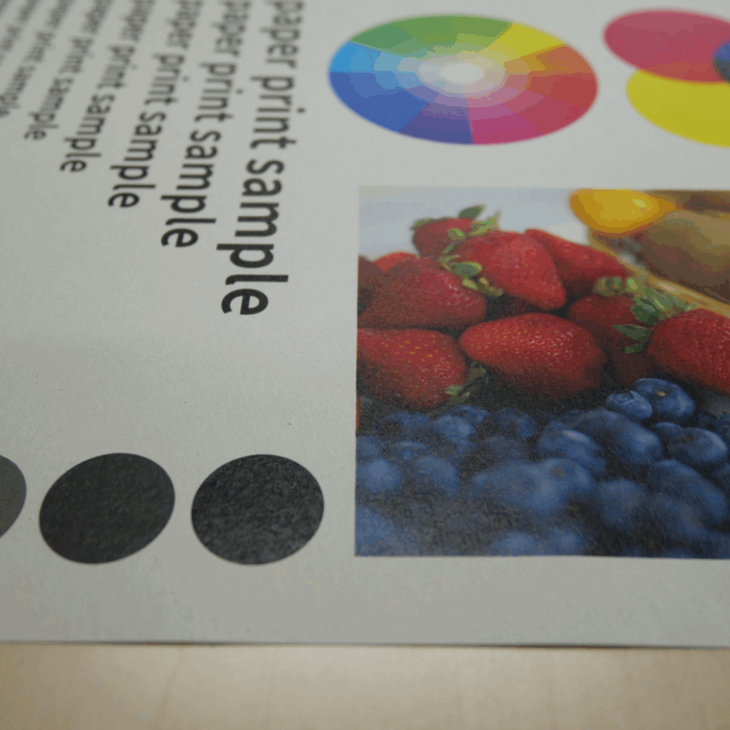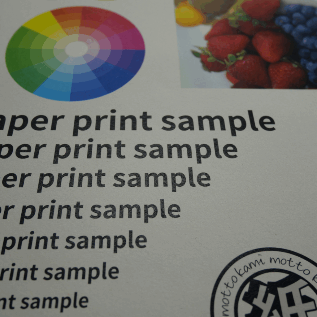 タブロは非塗工ながらも、オフセット印刷での発色がよく、カラー印刷にも対応しています。